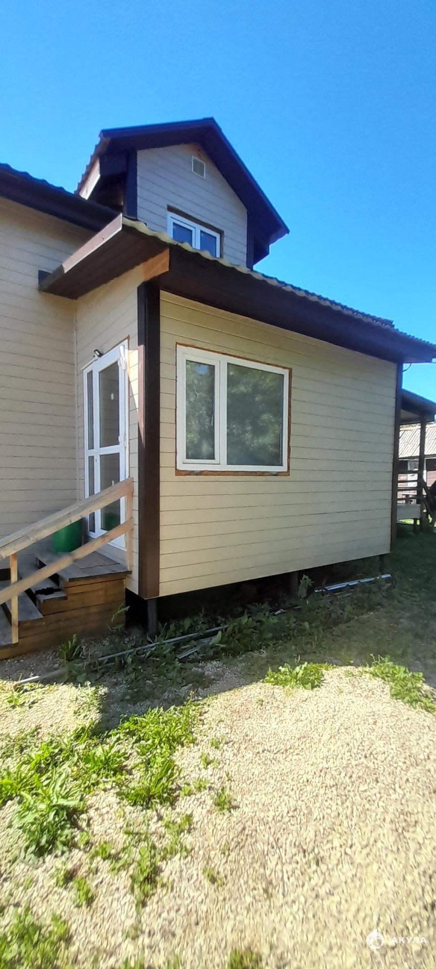 Продается новый деревянный дом. Участок 6 соток, ровный, сухой. Имеются садовые деревья, многолетние цветы. Участок огорожен металлических забором. Вход на участок с двух сторон. Ворота раздвижные, под автомат. На территории участка построен хоз блок с роль ставнями. Дом снаружи покрашен. Крыша металлочерепица. Окна и двери пластик. На веранду и на террасу большие панорамные двери. Вторая входная дверь металлическая. Внутри дома обшито всё деревом. Лестница на второй этаж деревянная. В доме ни кто не проживал. Собственная скважина. Свет. Канализация септик. Электричество 3 фазы. Газ по улице. Центральная асфальтированная дорога с тротуаром. Чистят и убирают круглый год. Участок расположен рядом с набережной, через мост. Так же рядом парк дружбы, река. Инфраструктура развита как для проживания, так и для отдыха. Продажа от собственника.