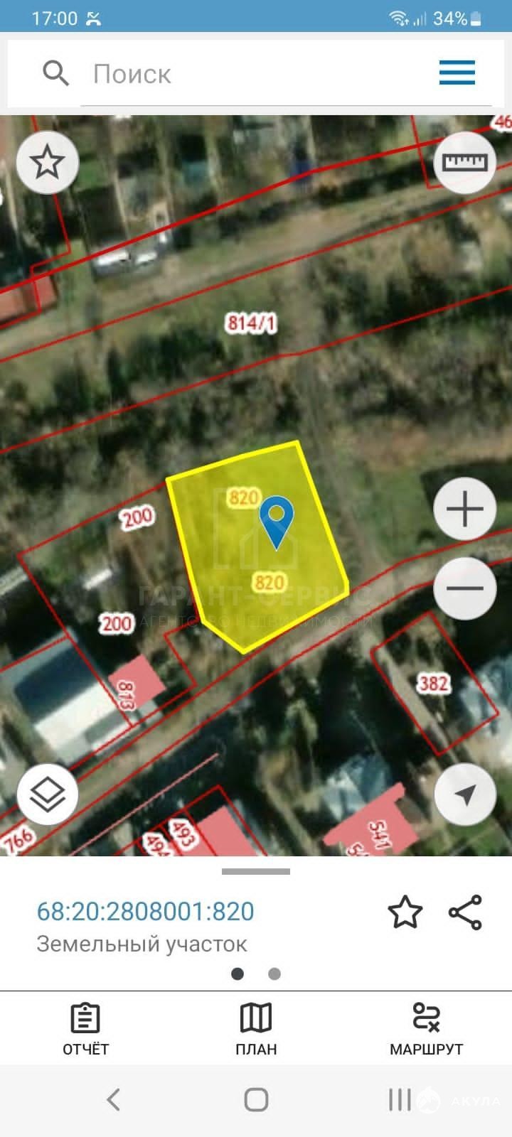 - Площадь участка